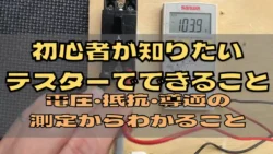 電気基礎初心者が知りたい!テスターでできる3つのこと【電圧・抵抗・導通の測定からわかること】 テスターで「何ができるのか」がわからない初心者向けに、電圧・抵抗・導通測定の基本をわかりやすく解説。現場での活用例や図解付きで、機器の正常確認や接触不良の判断ができるようになります。 2025.11.04電気基礎
